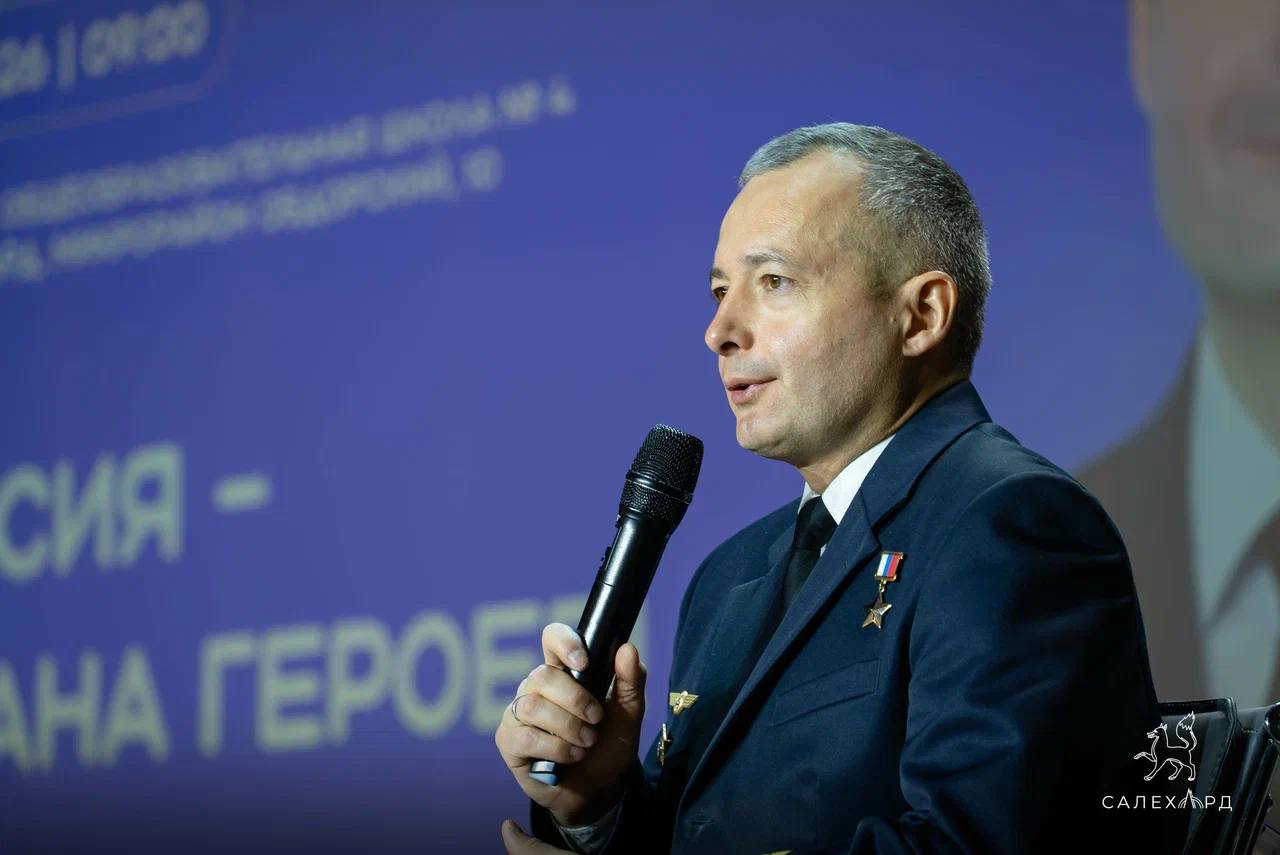 Дамир Юсупов - Герой России, лётчик, проявивший мужество и профессионализм во время аварийной посадки самолёта, уже во второй раз приехал в окружную столицу, чтобы пообщаться с юными салехардцами. В этот раз встреча объединила школьников практически со всего города — с 1 по 11 класс. Мероприятия прошли в школе №4 и Обдорской гимназии.