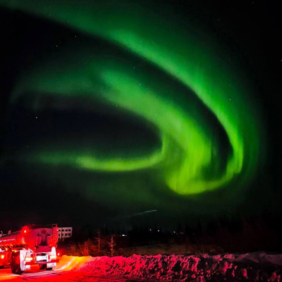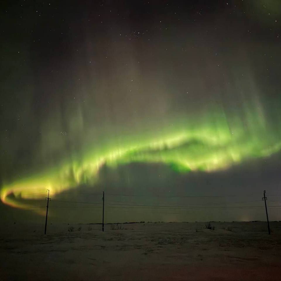 Зеленое свечение можно было увидеть в Якутске (фото 1), на Ладожском озере (фото 2) и на ключевом транспортном маршруте в Тазовском районе ЯНАО между селом Газ-Сале и поселком Тазовский (фото 3, 4).