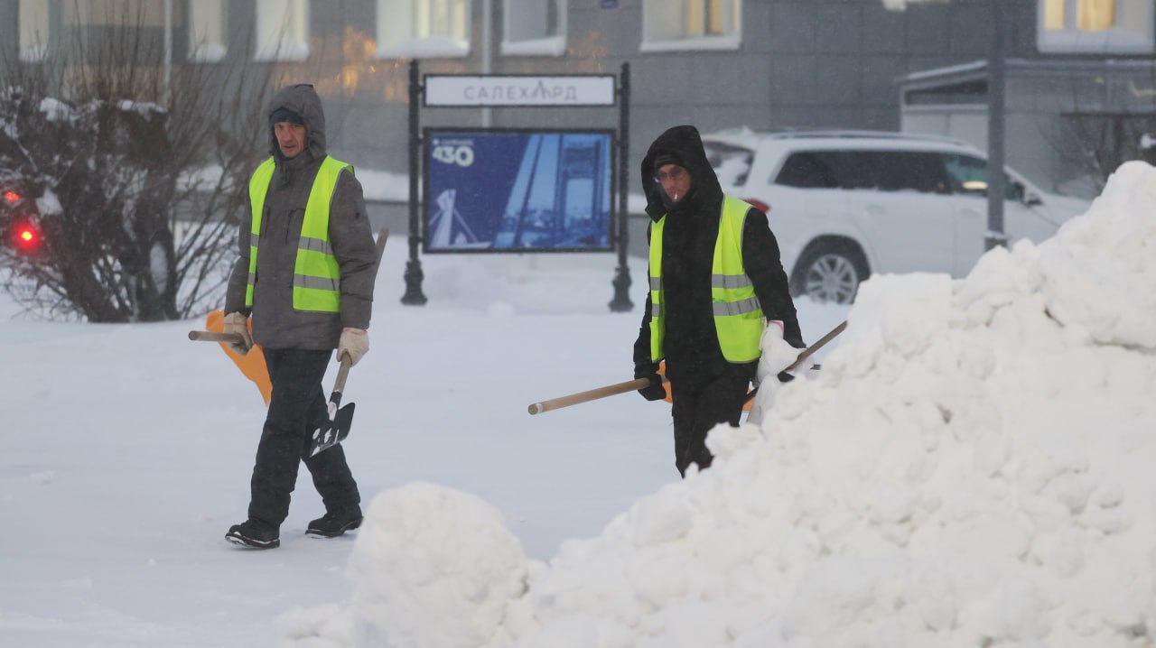 выводят снегоуборочную технику на улицы Салехарда с раннего утра;