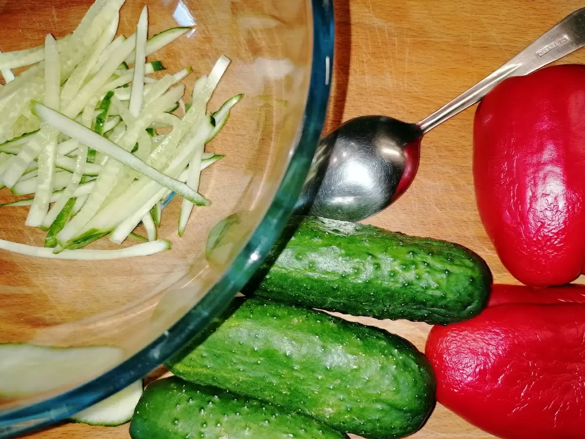 Для начала важно тщательно подготовить все ингредиенты. Огурцы и перец необходимо нарезать тонкой соломкой. Чистить и резать – это базовый этап, который поможет сохранить сочность и текстуру овощей в итоговом блюде.
