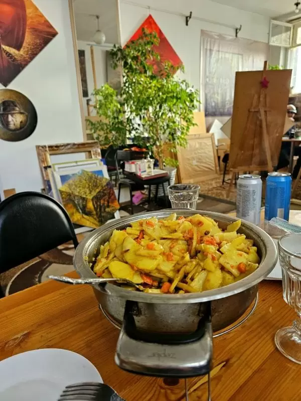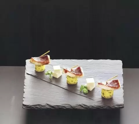Копченый картофель: варить картофель в мундире в подсоленной воде в течение 40 минут. Очистить, нарезать на кружочки размером 4 см и коптить в течение 6 минут с использованием ольховых опилок.