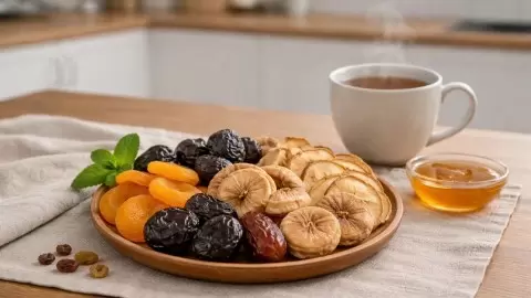 Калорийность сухофруктов тоже внушительная: курага — около 240 ккал/100 г, финики — 280–285 ккал, чернослив — 240–260 ккал. Гликемический индекс варьируется. Например, у фиников он может достигать 70, тогда как у кураги — всего 30–35.