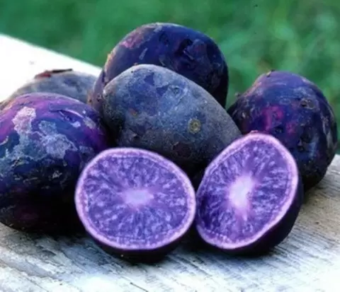 Форма клубней в основном овальная, с небольшими глазками, что облегчает процесс очистки. Растение среднего роста украшает яркими красно-фиолетовыми цветами, что делает его отличным выбором для ландшафтного дизайна.
