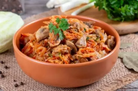 1. Тушеная капуста с грибами