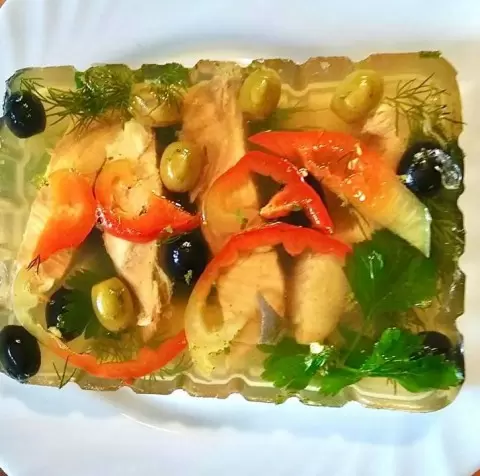 Такой подход к холодному блюду удобен: можно заранее собрать ингредиенты, а застынет формами на ночь или на утро перед встречей. Небольшой баланс вкусов и визуальная подача делают блюдо несложным, но приятным акцентом любого стола.