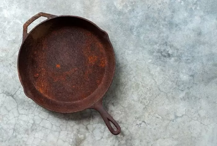 Одно из простых и рабочих решений — газированная вода.Она содержит углекислый газ, который превращается в угольную кислоту и мягко снимает ржавчину, возвращая металлу близкий к исходному оттенок. Эффект усиливается, если сковороду слегка разогреть перед обработкой. Достаточно залить поврежденные участки газировкой и подождать несколько минут, затем мягко потереть губкой. При стойких пятнах можно добавить небольшую щепотку морской соли для более деликатного абразивного эффекта.