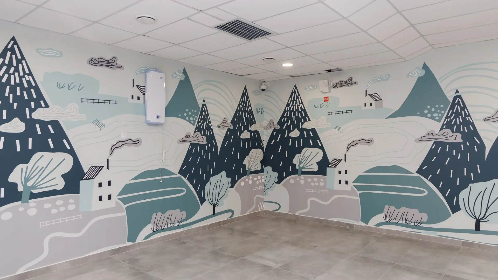 Остаются последние штрихи перед вводом здания в эксплуатацию. Сейчас строители наносят элементы навигации для безопасного передвижения маломобильных пациентов. На завершающем этапе пусконаладочные работы внутренних инженерных систем.