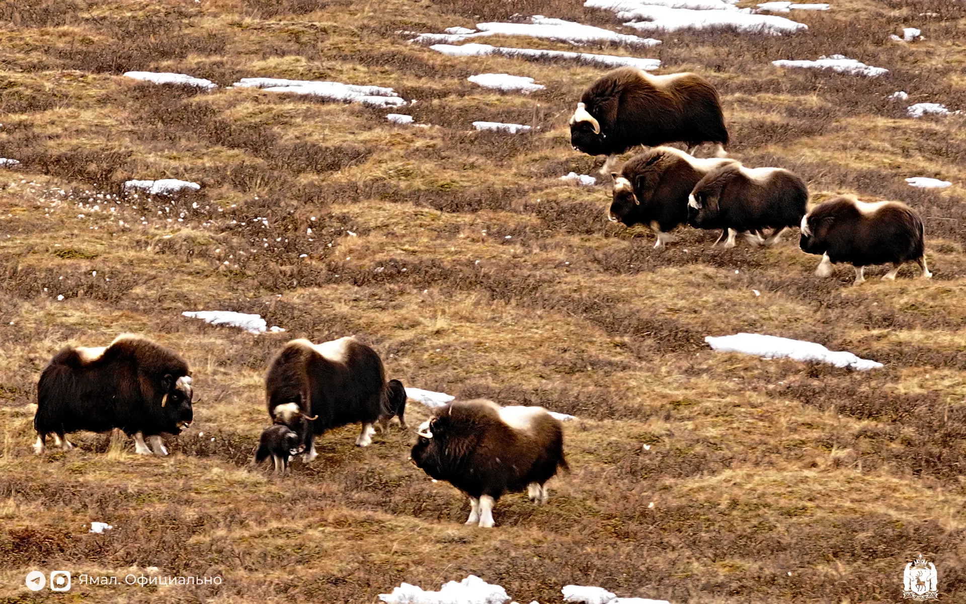 С начала апреля в вольерах природного парка родилось уже семь телят овцебыков.