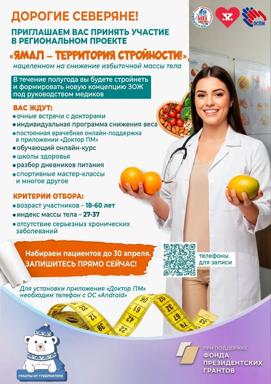Присоединяйтесь к региональному проекту «Ямал — территория стройности!» — и за полгода сформируйте привычки ЗОЖ под руководством медиков!