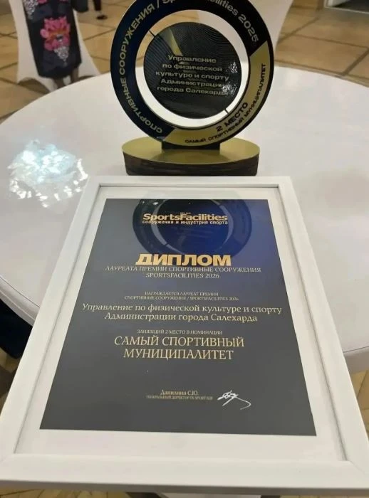 Управление по физической культуре и спорту Салехарда заняло второе место в XII ежегодной премии SPORT FACILITIES в номинации «Лучший спортивный муниципалитет». Награждение прошло в Минспорте России.