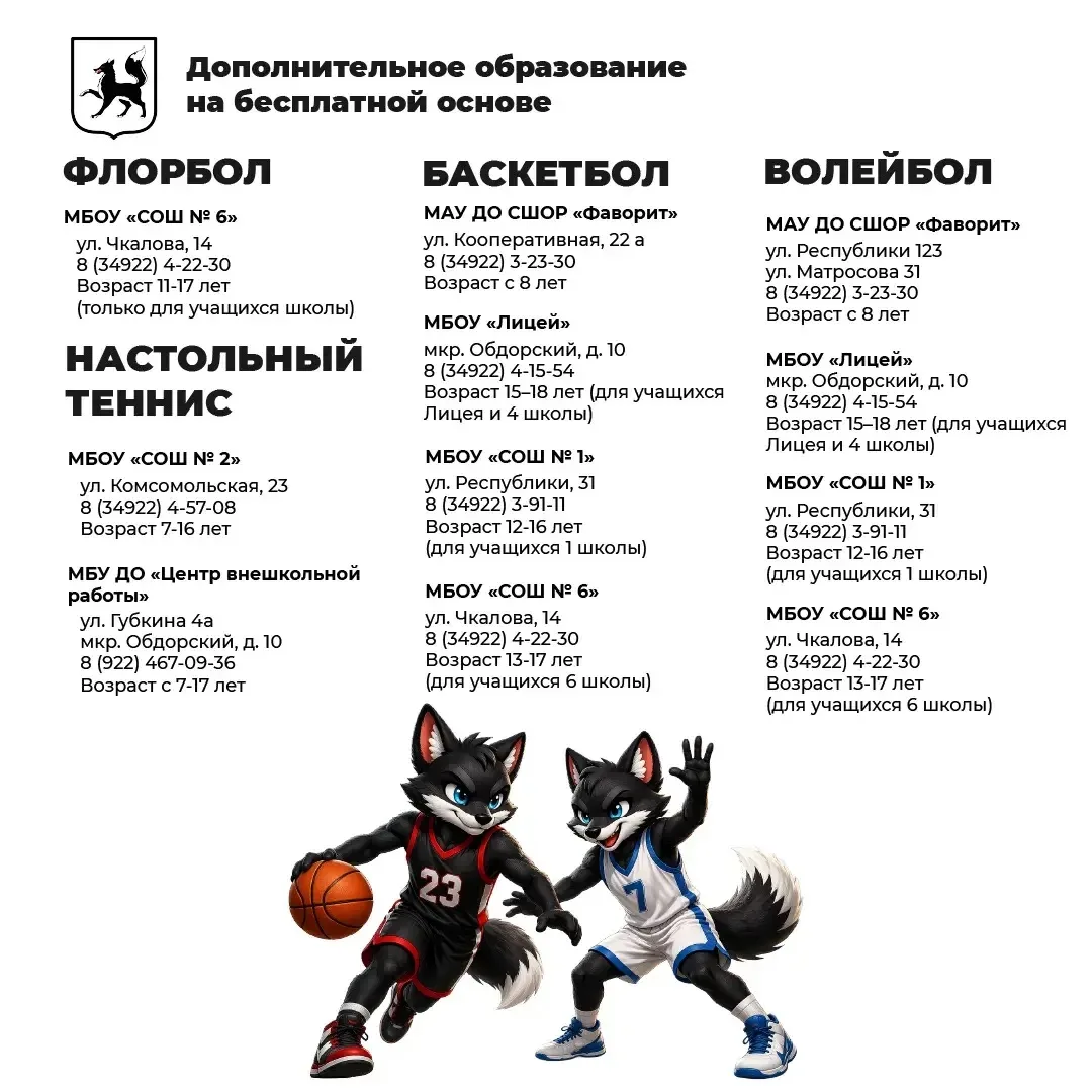 Что объединяет волейбол, баскетбол, настольный теннис и флорбол? Правильно: все эти направления входят в перечень популярных секций дополнительного образования нашего города.