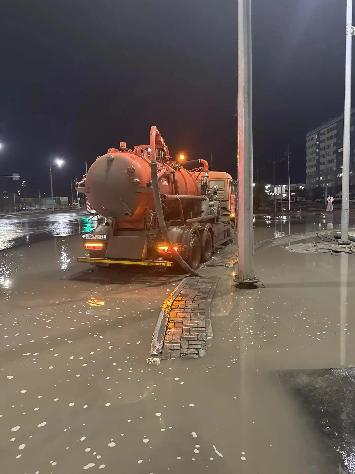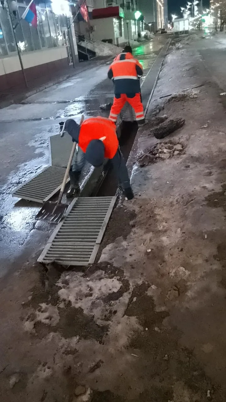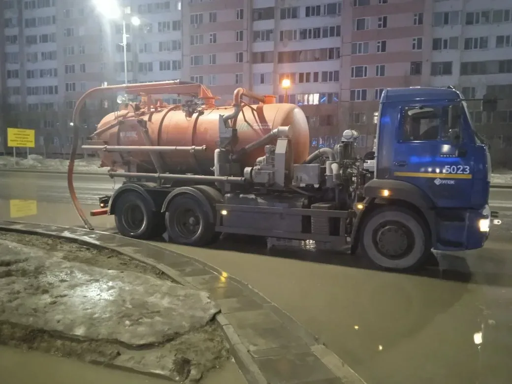 На борьбу с лужами вышли вакуумные машины. Также производится вывоз снега и очистка лотков. Работы ведутся круглосуточно в Северном и Южном районах города.