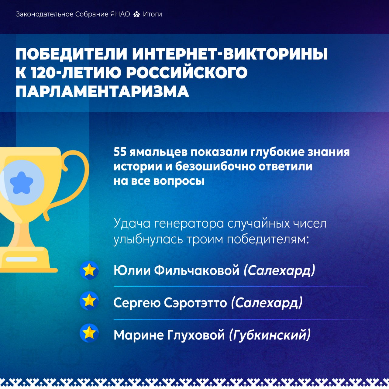 Интерес ямальцев к истории своей страны и её законодательным традициям показывает высокую гражданскую зрелость и неравнодушие. Знание прошлого помогает лучше понимать настоящее и увереннее строить будущее нашего региона и всей России.