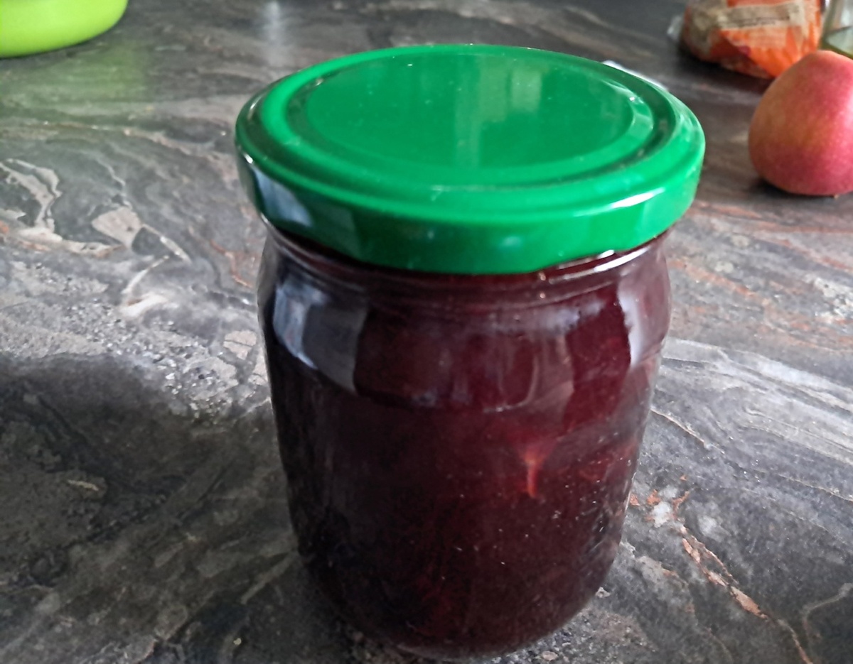 После окончания варки нужно подготовить стерилизованные банки, разлить горячее варенье, закатать и оставить остывать, перевернув банки вверх дном.