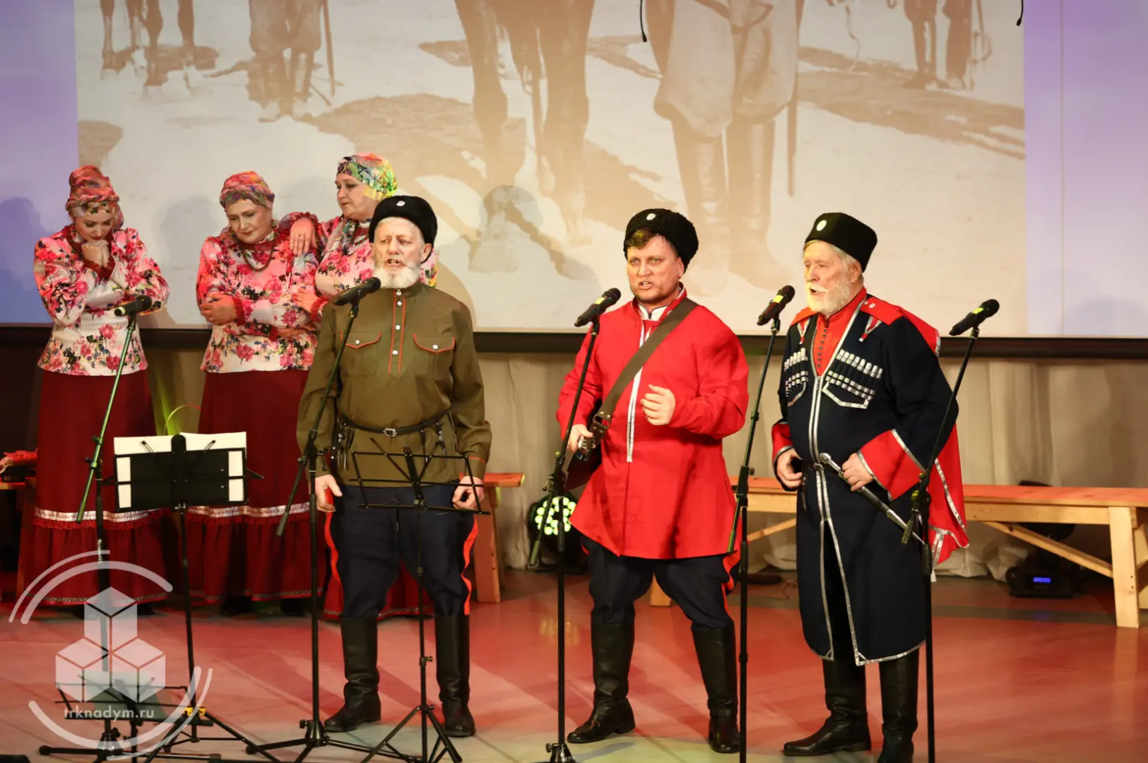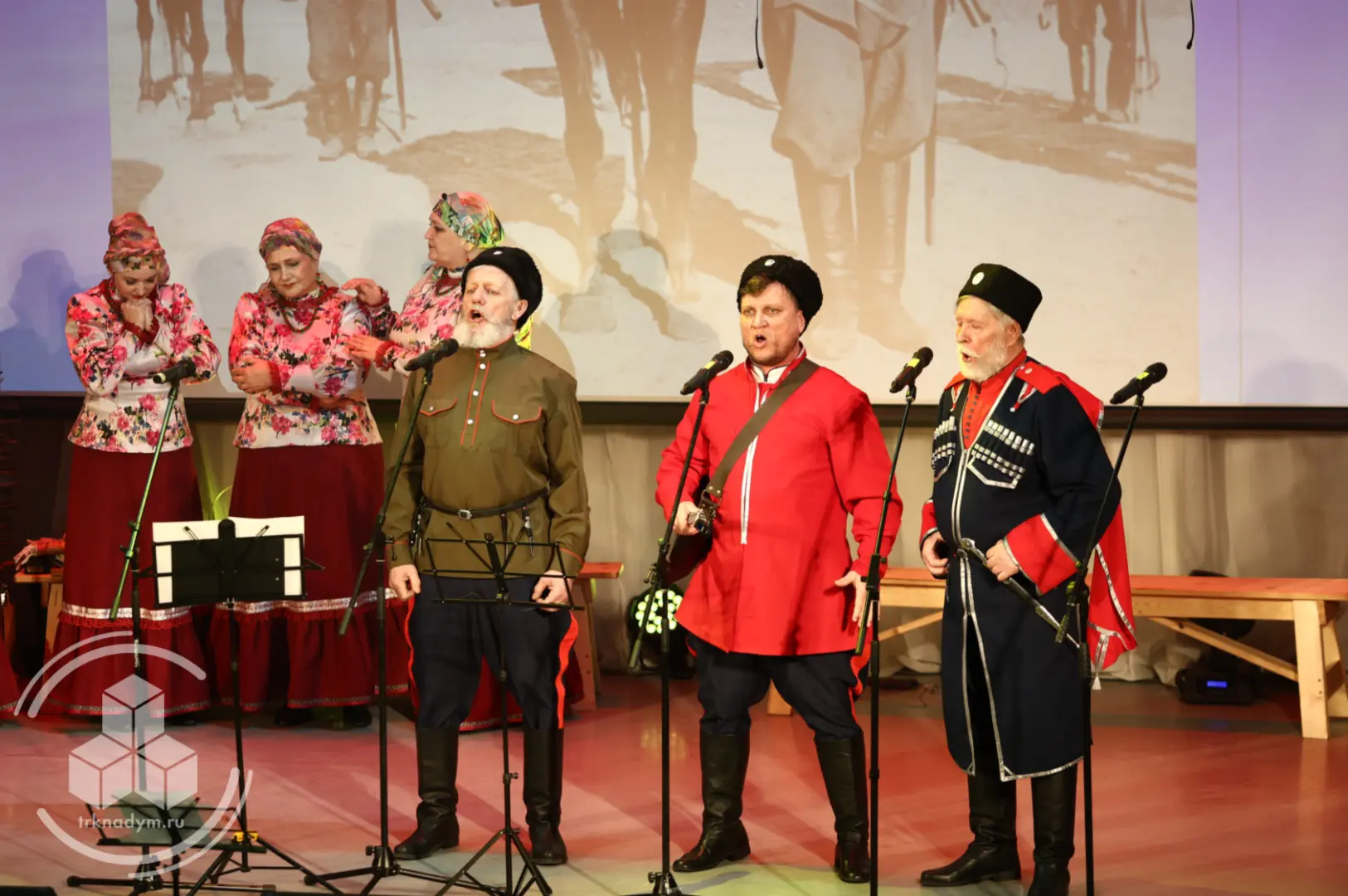 Ансамбль «Ямальские казаки» показал историю казачьей станицы — от мирной жизни до войны и возвращения домой, отдельно воспев подвиг женщин-казачек.