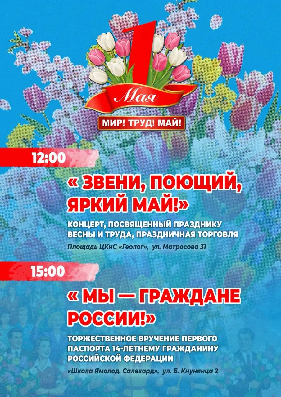 Праздничный концерт, посвящённый Дню Весны и Труда, пройдёт на главной городской площади у ЦКиС «Геолог».