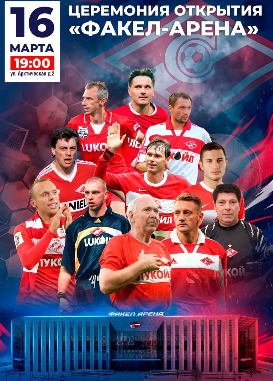 У вас есть возможность попасть на торжественное открытие и увидеть матч ФК «Спартак Легенды» против ФК «ФАКЕЛ ЯМАЛ» (ветераны спорта).