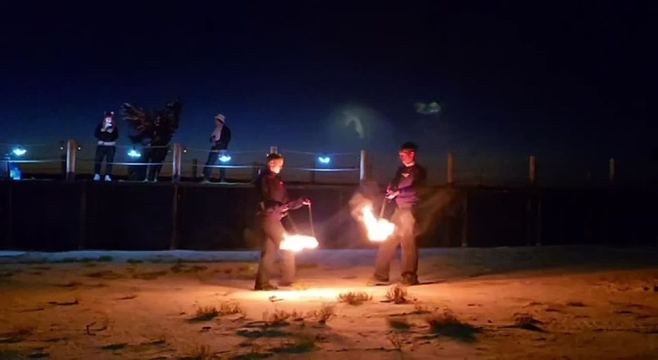 Огненное шоу «Очень теплые коты» на берегу городского озера, недалеко от пирса, устроило настоящее световое представление. Свидетелем танца огня мог стать каждый желающий. Здесь и номера с живым огнем, живой...