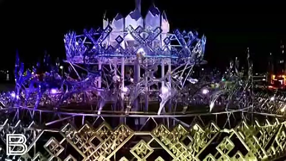 Проект по архитектурно-художественной иллюминации реализован компанией Ростелеком. Теперь объект ярко светится ночью, подчеркивая ямальский орнамент, силуэты оленей и горы.Система освещения имеет два режима: цвета российского триколора символизируют...
